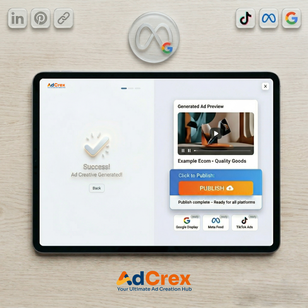 Launch your ads across multiple platforms instantly with Adcrex. From publishing to performance tracking, manage everything in one place—simple, fast, and efficient.